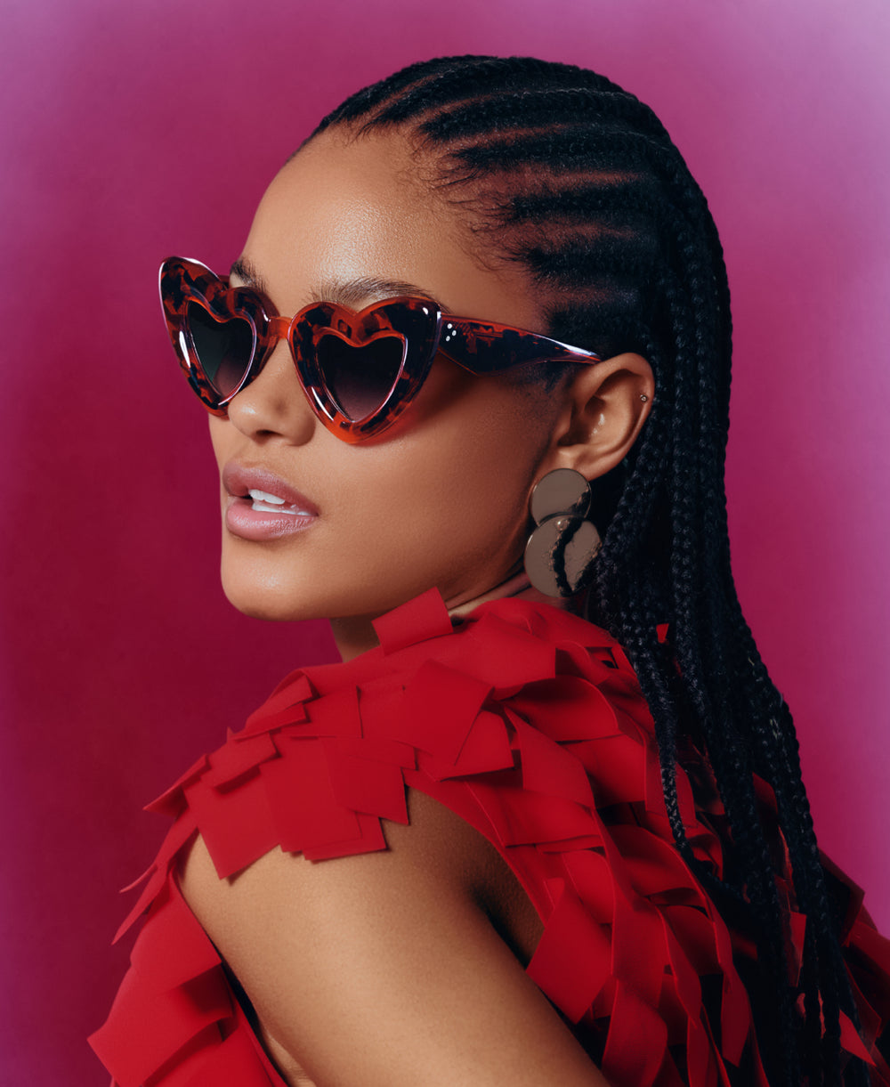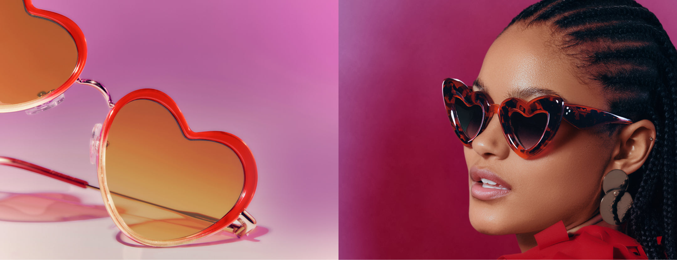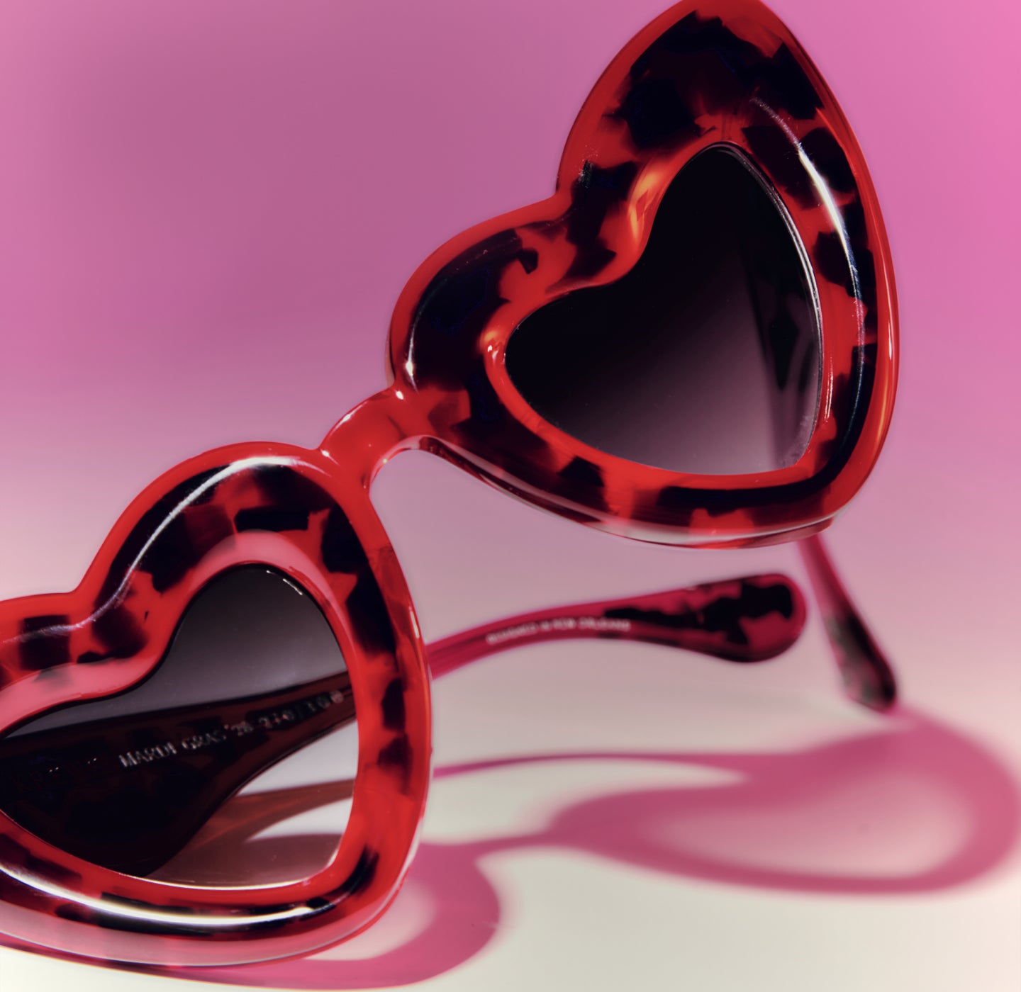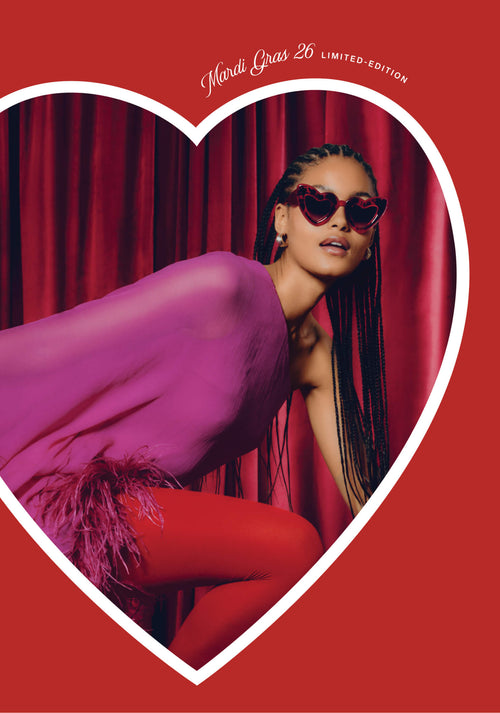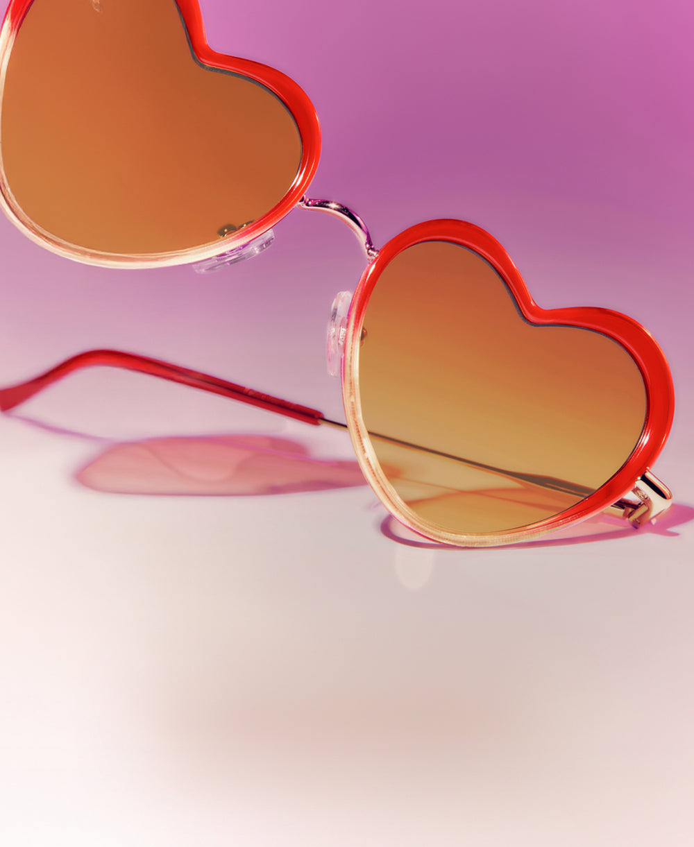 FAITHFUL | 18K + Cherry on Top Handcrafted, luxury, heart shaped red Mardi Gras acetate and 18K stainless steel KREWE sunglasses