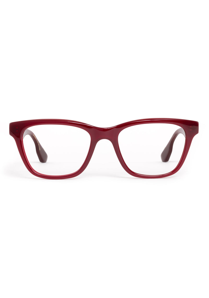 VALERIE is our ultra-wearable version of the classic cat-eye silhouette. This frame features a subtle upswept brow that complements the square lenses, creating an elegant, elevated daily staple.
