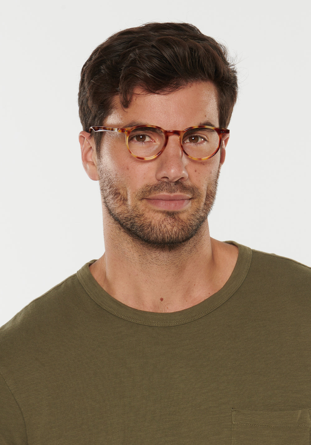 CARSON's petite, rounded silhouette is a great choice for everyday wear, available in several offbeat acetate patterns.