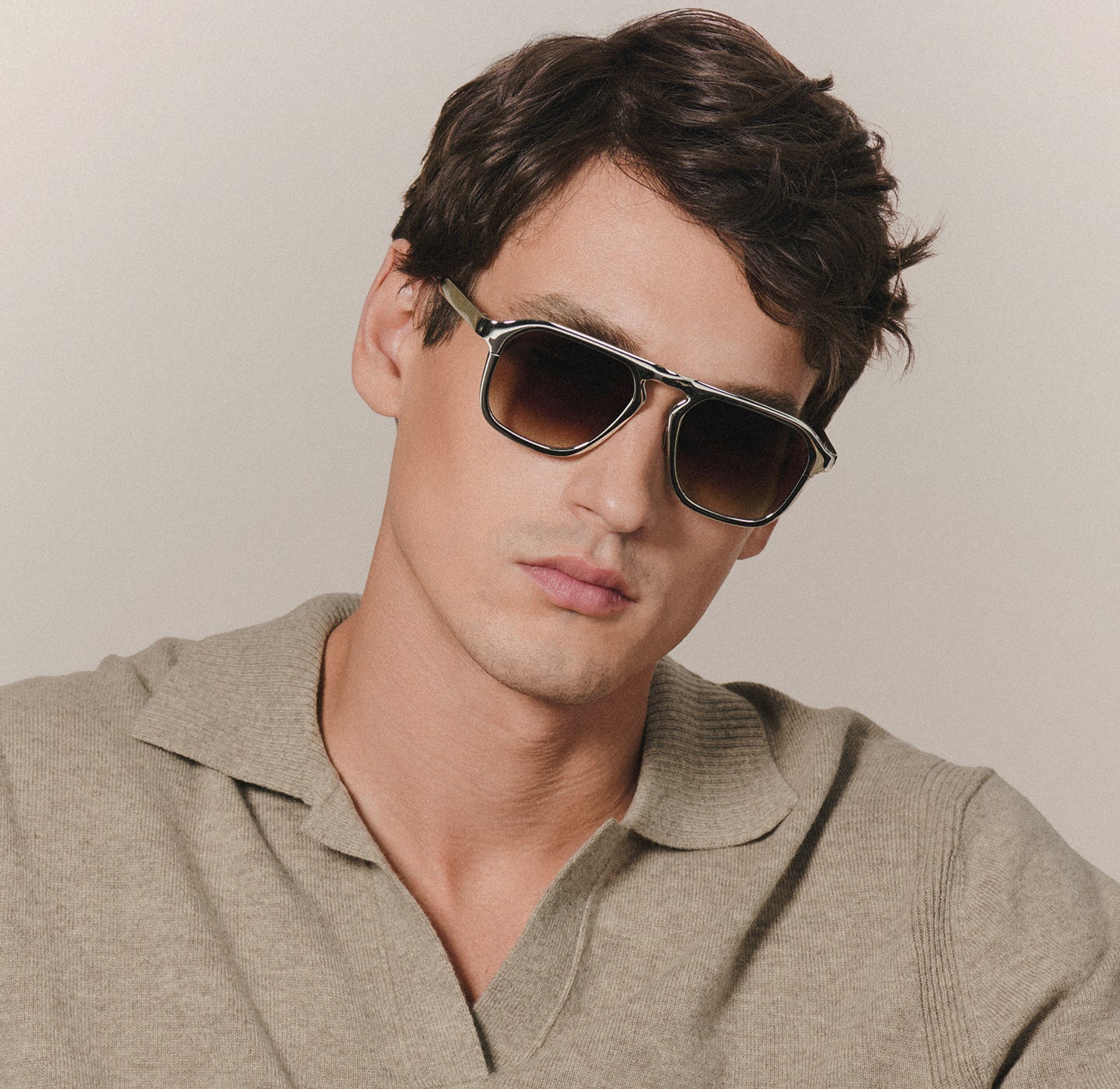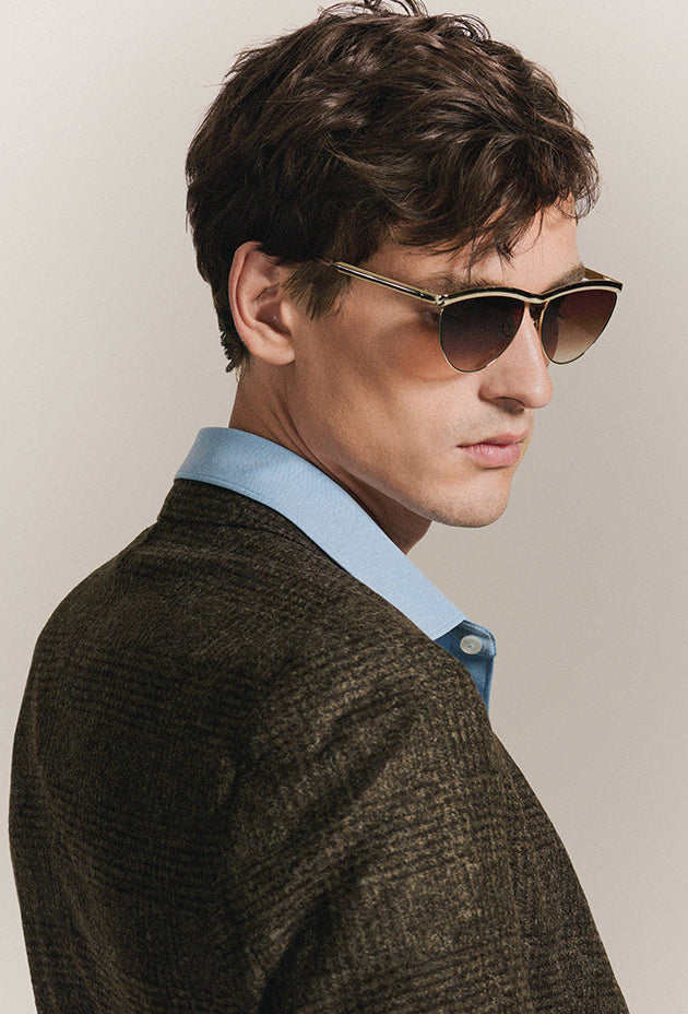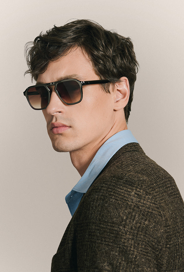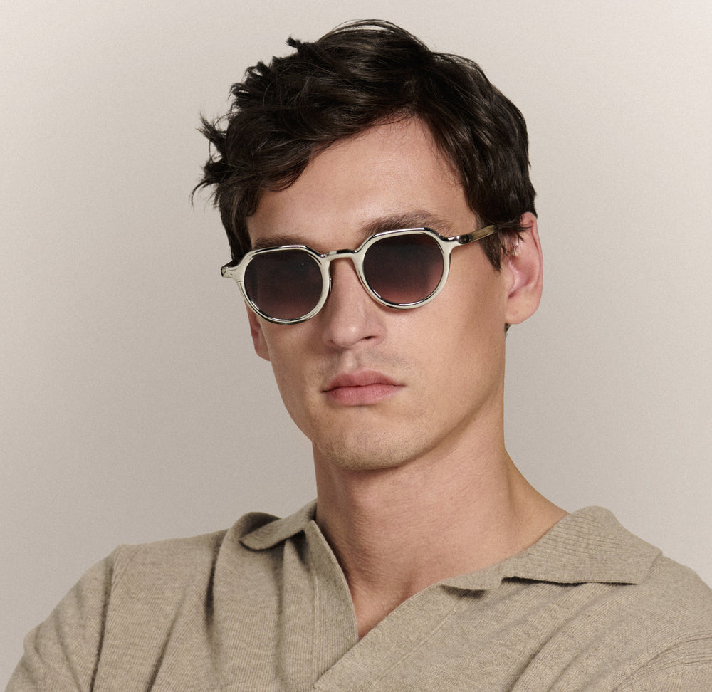 This signature construction comes to life across three distinct silhouettes: ZANDER, with its sculptural wrap and bold stance; HEIDI, defined by a refined brow bar and architectural rim wire; and GALVAN, a single piece of sculpted metal designed to showcase the full impact of Chroma.