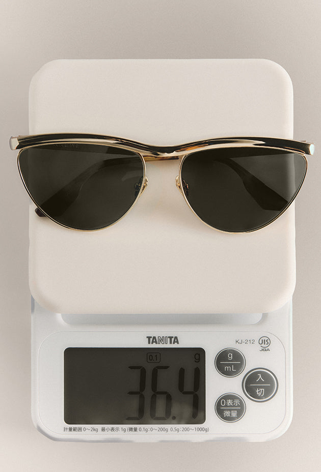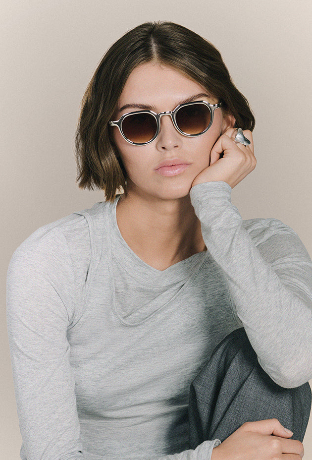 Defined by its sculptural brow bar and refined rim wire, HEIDI balances strength with elegance. The convexed mirror construction enhances its clean metal lines, creating a striking interplay between structure and light.