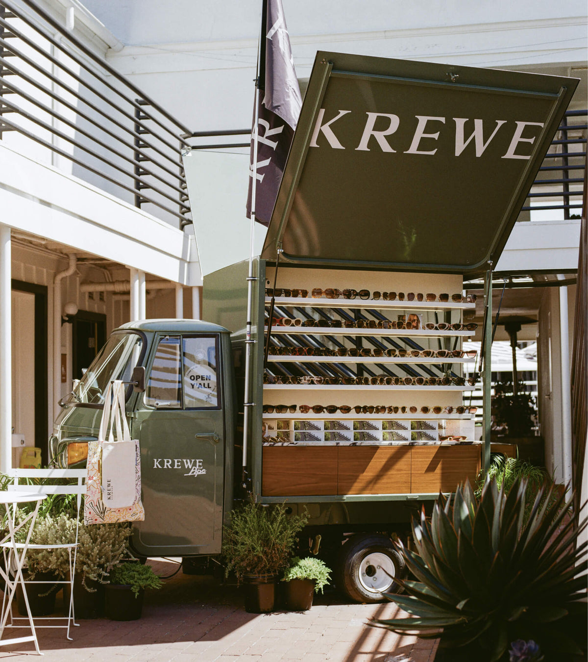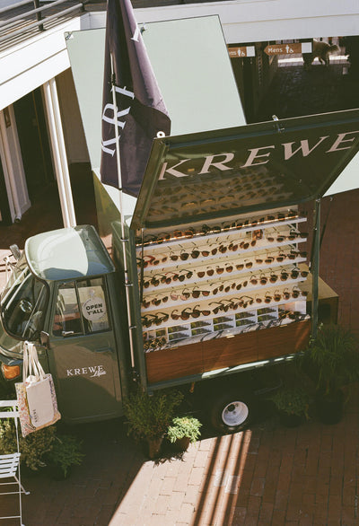 When you've had enough of the surf and sand, dry off and come by our KREWE Tiny House parked at Grand Boulevard. Here you'll be able to browse a sampling of our handcrafted sun and optical frames.